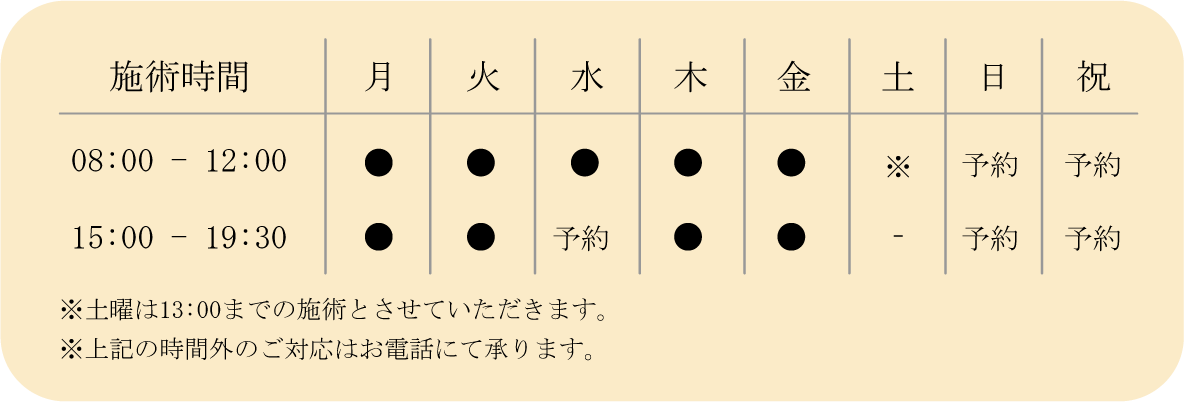 ・当院では、保険施術による過度な頻回施術は行っておりません。安心してお越し下さい。